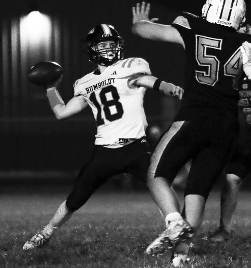 Humboldt quarterback Gavin Gunderman completed 4-of-14 passes for 111 yards and a touchdown along with three interceptions.