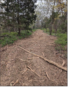 Work continues on the trail with various volunteer groups trimming and clearing downed trees. A measuring wheel has traversed the trail, and mileage posts have been set every quarter mile. Purple heart decals will be affixed to each trail post to supplement the blue trail paint slashes that mark the way. Plans are underway to update the existing maps and kiosks to reflect the new trail.