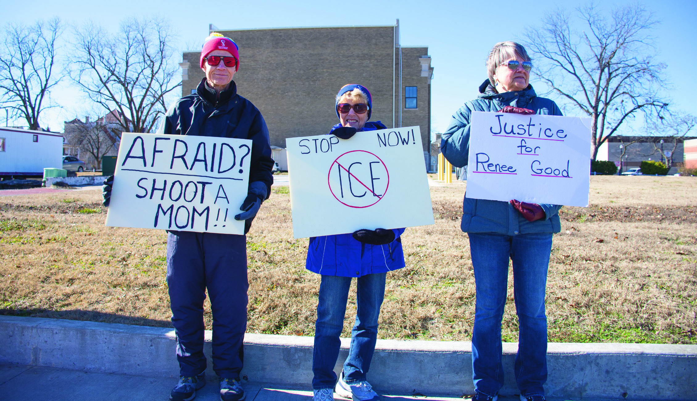 Cathy Dean, the chairperson for the Labette County Democrats, said she was protesting because she was concerned about how ICE is operating.